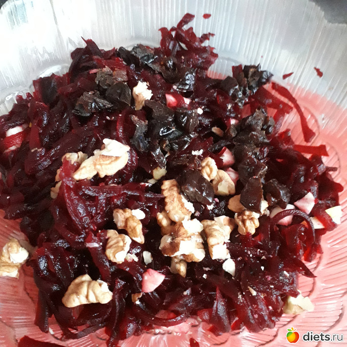 Свеклу с черносливом и орехом сто лет не делала, надо приготовить, тем более вареная свекла где-то в холодильнике болтается как раз