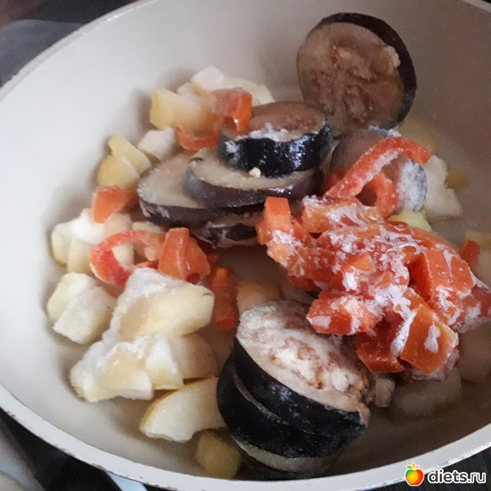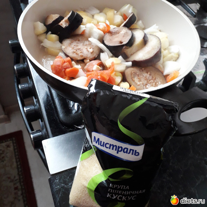 -Потушила из замороженных на зиму овощей-овощное ассорти в сметане с кус-кусом