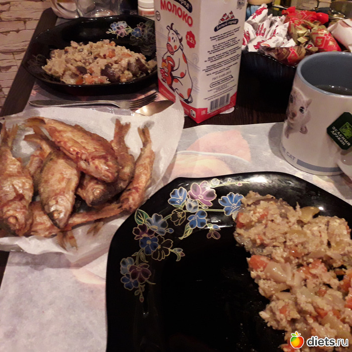 -Жареная плотва с рыбалок мужа +овощи с кус-кусом