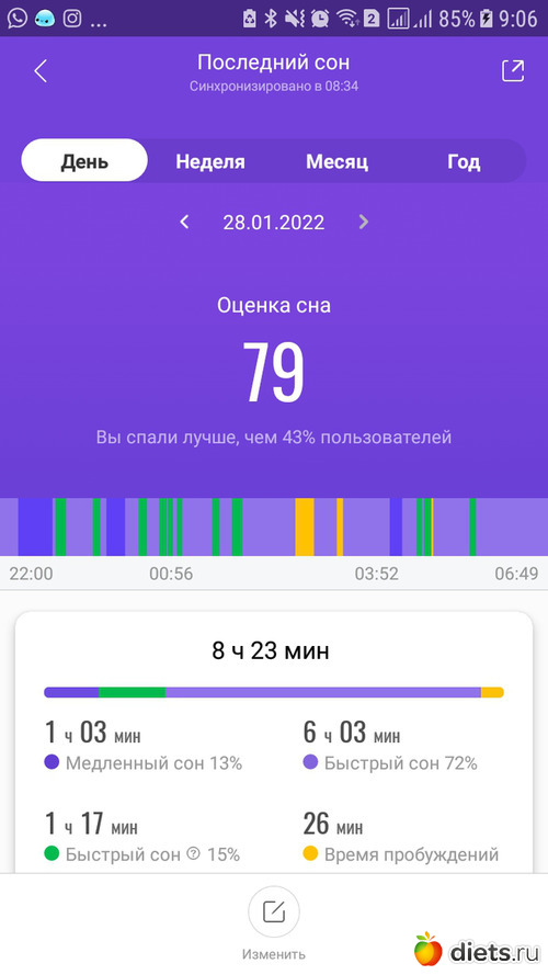 По сну. Просыпалась один раз, это хорошо, но глубокого сна всего 1ч 3 минуты, мало. По ощущения, бодрости нет, но желания валяться в кровати нет. С утра даже немного попела. То есть выспалась. Иду в правильном направлении.