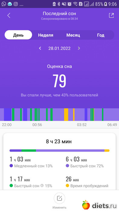По сну. Просыпалась один раз, это хорошо, но глубокого сна всего 1ч 3 минуты, мало. По ощущения, бодрости нет, но желания валяться в кровати нет. С утра даже немного попела. То есть выспалась. Иду в правильном направлении.