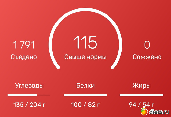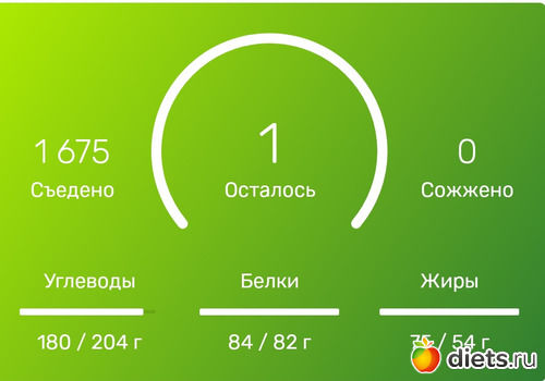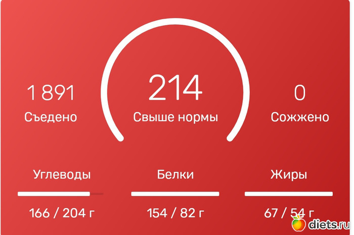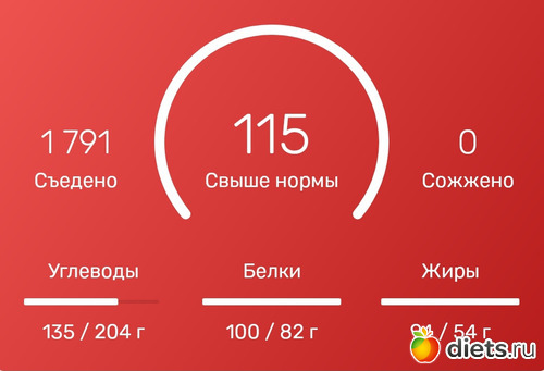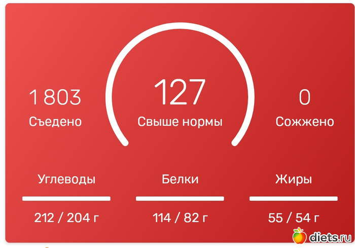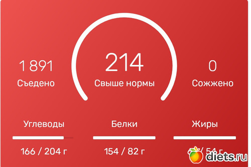 Съедено 1803 Ккал, пройдено 13 т. шагов