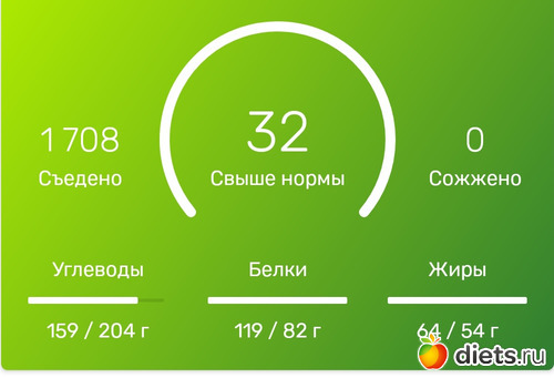 Вообще я стремлюсь питаться где-то примерно в диапазоне 1700-1900 Ккал, но я пока в начале пути, толком не пойму как это делать... и прощаю себе небольшие ошибки и отступления