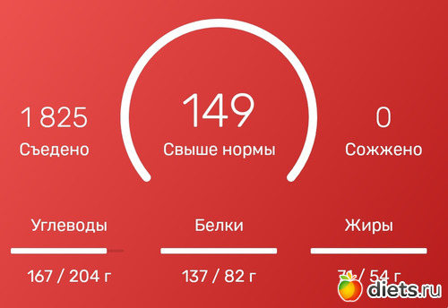 Съедено 1825 Ккал, пройдено 15 т. шагов