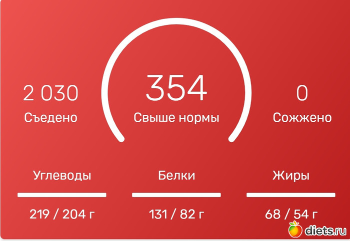 Съедено 1765 Ккал, пройдено 12т. шагов