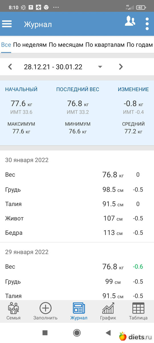 неделю закрывают за минусом 700 гр. Для моего "плато" очень хорошо. Завтра по весу буду закрывать месяц Января. На сегодняшнеечисло -2.100 кг.