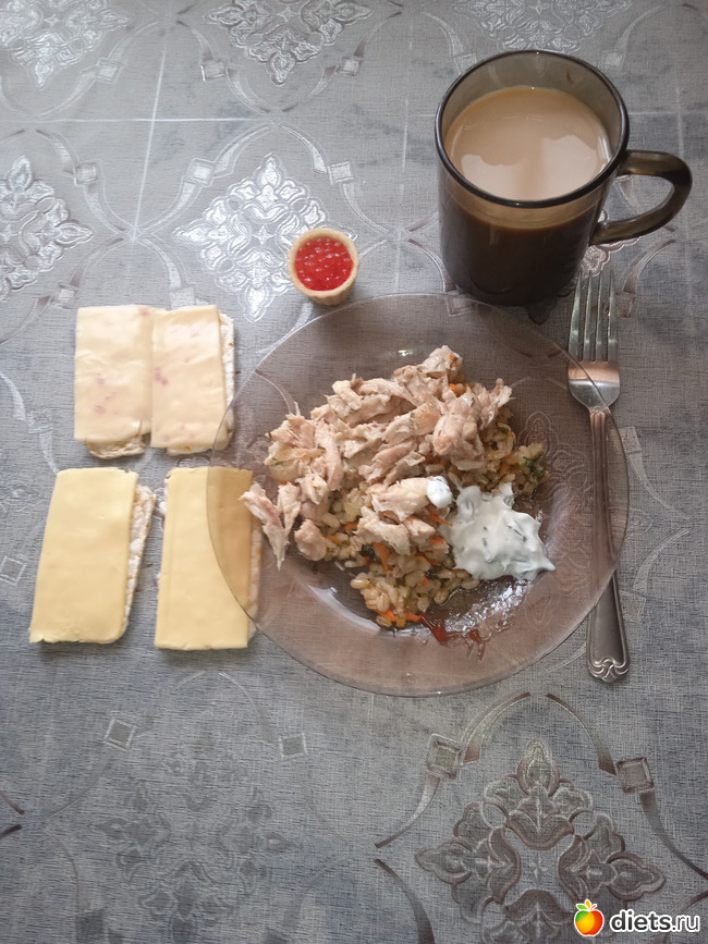 Съела половину тарелки перловой каши и половину бутербродов с сыром.