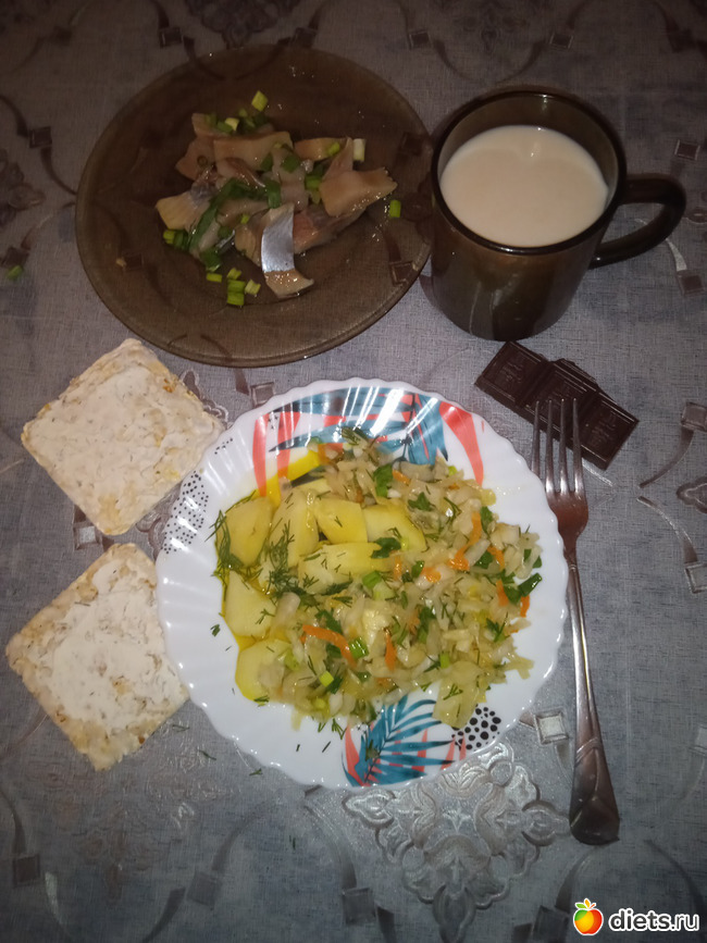 Отварной картофель с укропом и квашеная капуста с р маслом з. луком и укропом.