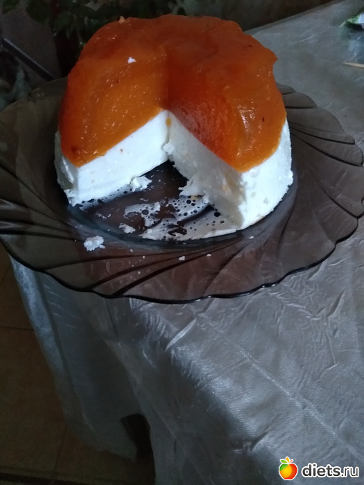 В 100 мл горяченькой (не кипяток) воды (примерно 90 градусов) растворяю 2 чайные ложки быстрорастворимого желатина. В другом стакане тоже в 100 мл горячей воды растворяю так же 2 чайные ложки желатина. Можно использовать любой. Только разводить надо согласно инструкции. Хурму превратила в пюре с помощью блендера. Добавила сок лимона и подсластитель. В следующий раз попробую с апельсиновым соком. Кажется будет ароматнее. Добавила в него растворенный желатин и поставила застывать. Творожок мягкий Простоквашино 0 % размешала с подсластителем и добавила растворенный желатин из другого стакана. Ванилина немного. И когда желтый слой застынет, на него вылила творожный слой. И застывать до утра. Это блаженство! Желе, муссы- всегда помогают в процессе похудения. Если вы любите такие штучки, то я вам рекомендую приготовить и полакомиться.