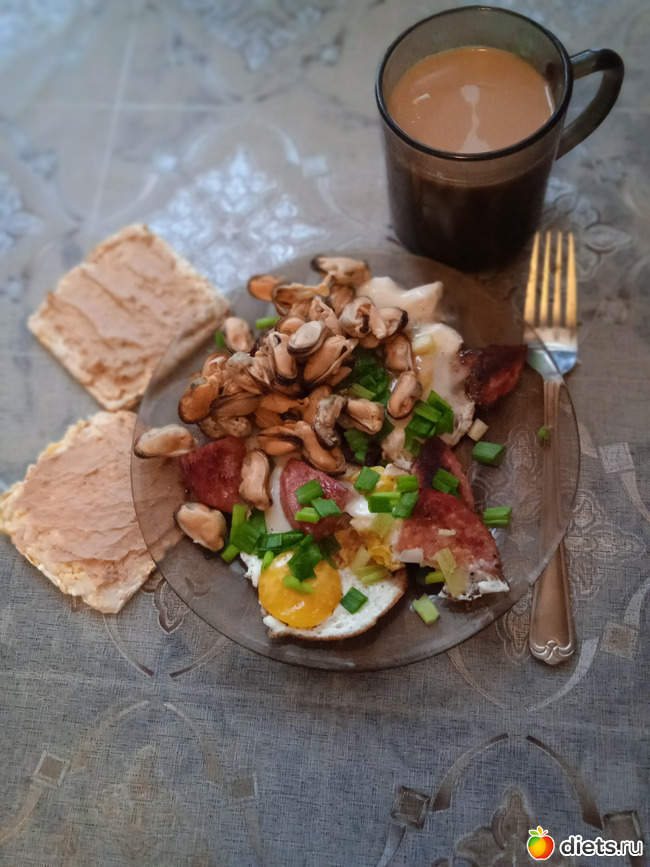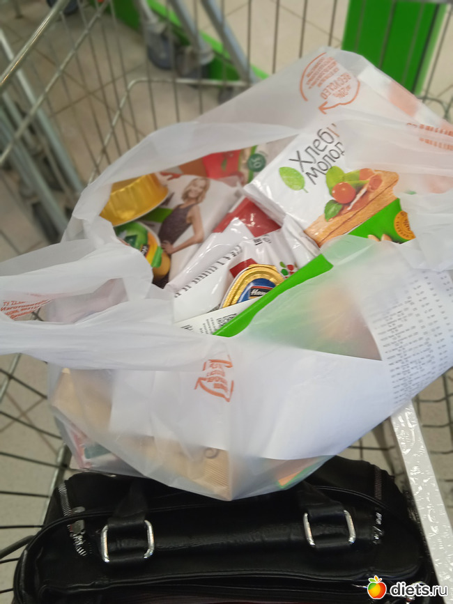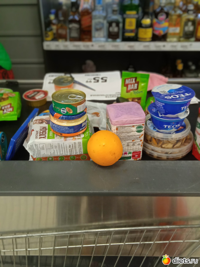 Покупки как и у меня - йогурт теос, хлебцы, мидии. Всё что я люблю