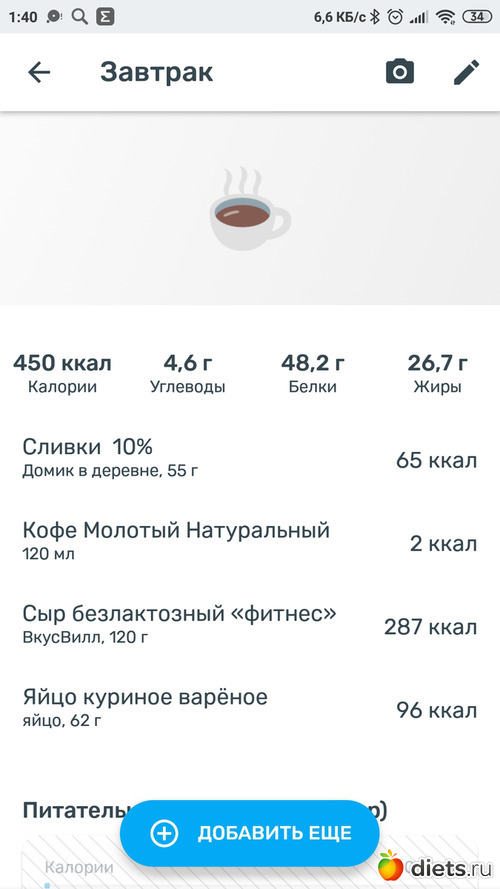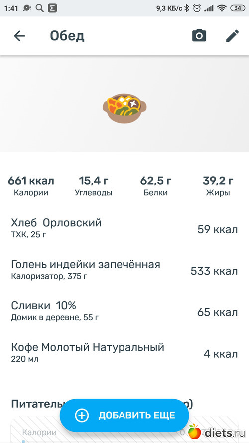 Сегодня еду не фотографировала - прооооооосто невозможно это было. Поэтому как раньше - скрины дневника.