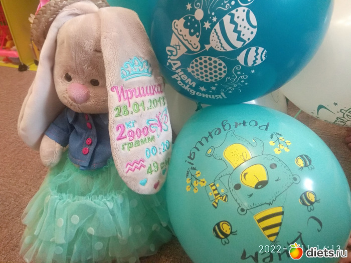 Второй - для новорождённой племянницы, его из коробки доставать не стала. Зайцев для себя к ДР и для малышки-двоюродной сестрёнки выбирала Иришка. Идея возникла благодаря Мишаниной крестной, которая на его ДР подарила нам такого медвежонка. Заказывала я у той же девочки, хоть она и из Краснодара, а полно таких предложений и в Мск - уж очень мне понравилось, да и "канал проверенный"