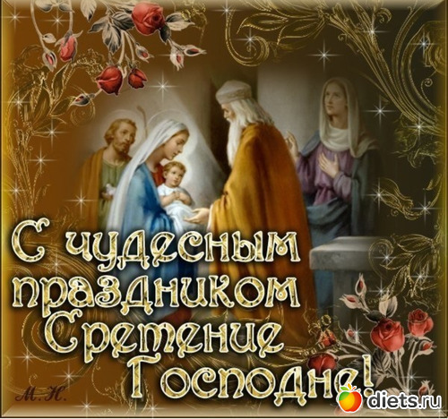 Со Сретением Господним поздравляю Вас! Пусть в душе всегда будет тепло и добро. Уюта в доме, успехов в роботе, здоровья вам и вашим родным. Пусть Ангел вас всегда оберегает и помогает найти верный путь. С праздником!