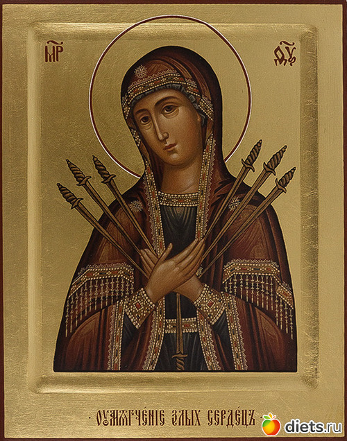 Пресвятой Деве праведный Симеон сказал: «Се лежит Сей на падение и на восстание многих в Израиле и в предмет пререканий, и Тебе Самой оружие пройдет душу, да откроются помышления многих сердец»