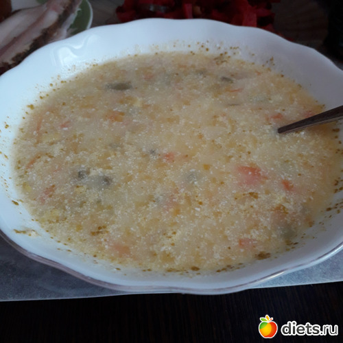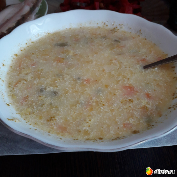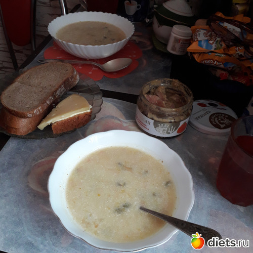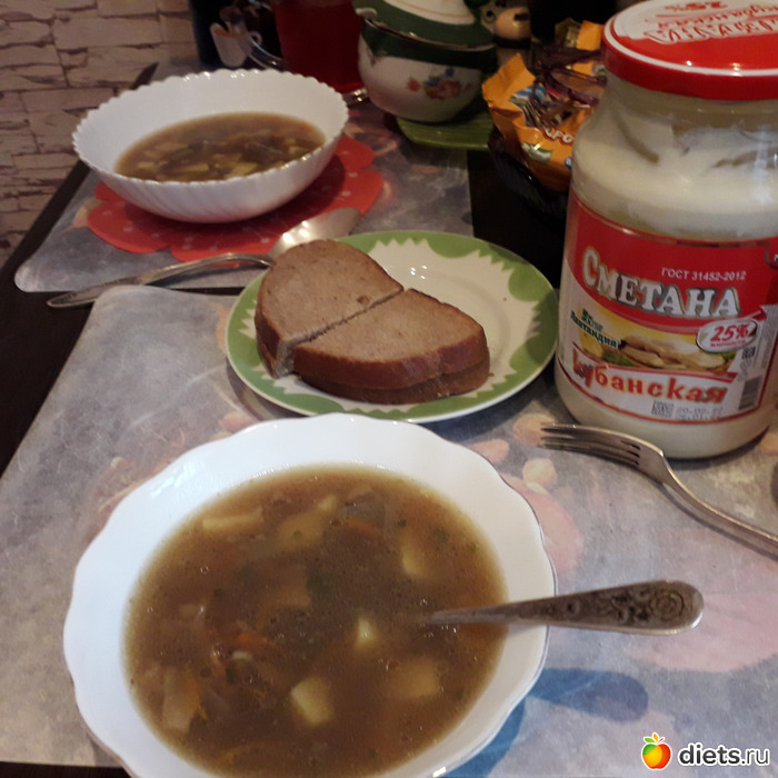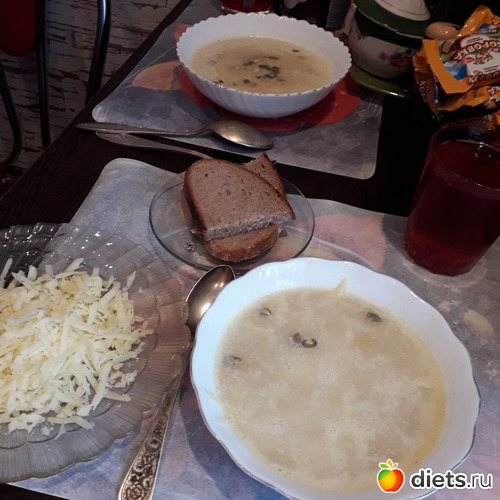 -Суп грибной(из сушеных грибов), салат Оливье, компот