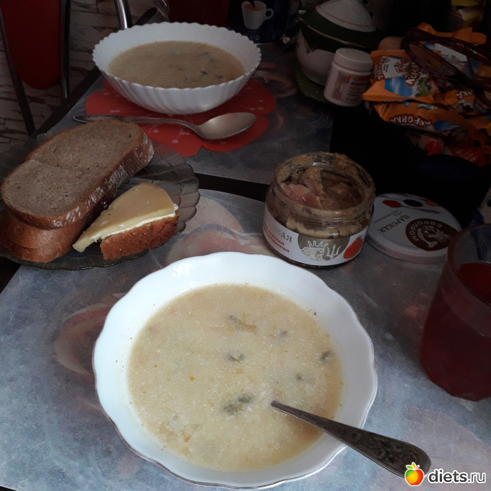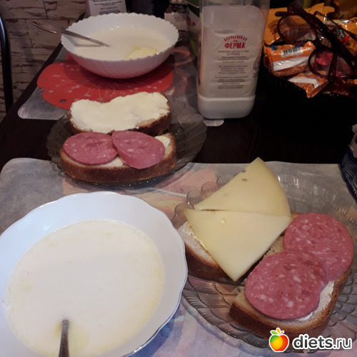 У Гриши творог и бутерброды, у меня -бутерброды