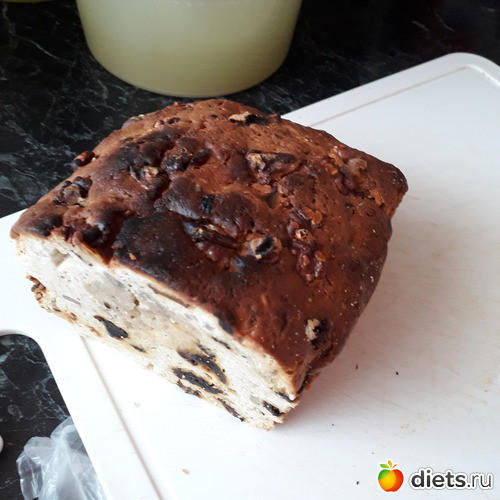 -Разрезали Рождественский Кекс-половину сестре отправила. Думала засох-нет, он уплотнился, но резался прекрасно и не крошился! ЕМУ 2,5 ГОДА-ПЕКЛА В ОКТЯБРЕ 2019 ГОДА!!! Этот у меня тогда немного зажарился! Завернут был во много слоев пленки-я и забыла, что он немного подгорел! На вкусе это не отразилось!