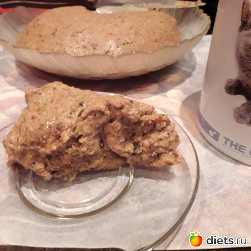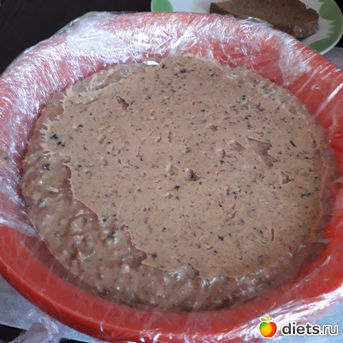 Кекс перебила в измельчителе и смешала с молокомасляной смесью. Форму выложила пленкой, чтобы удобнее вынимать!