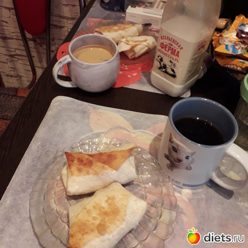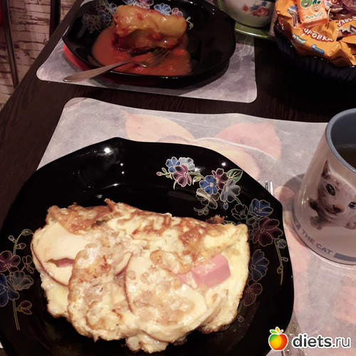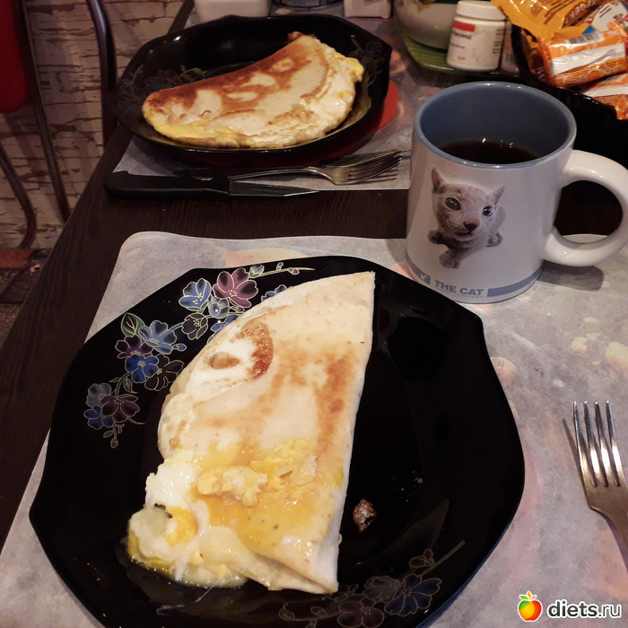 -Завтракали яичницей с сыром в лепешке, кофе с молоком