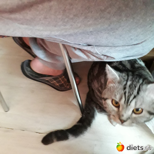 Мося- хороший ребенок, утром не дает поспать!Сухой корм у него стоит всегда- но утром надо давать влажный,плачет и просит.Гриша привык утром вставать в часов 9 -а сейчас нас поднимает в7утра!