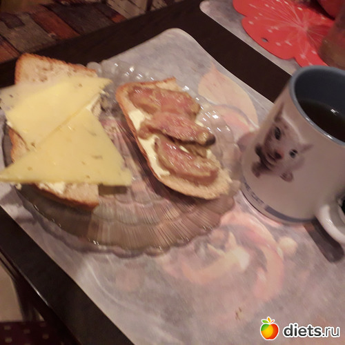Бутерброды-с сыром и с горбушей в горчичном соусе, чай
