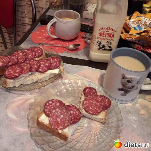 -Позавтракали манной кашей, бутербродами и кофе с молоком