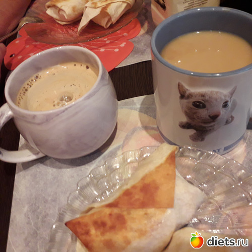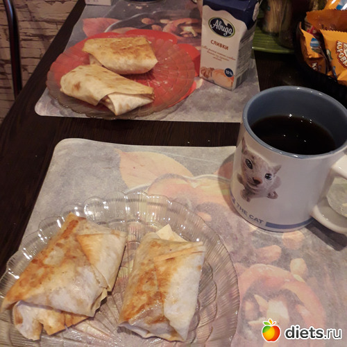 -Лавашные пирожки с яблоками, кофе с молоком