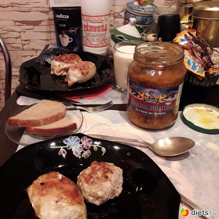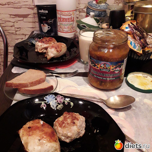 -Галантины куриные, консервированные баклажаны, ряженка-чай с лимоном