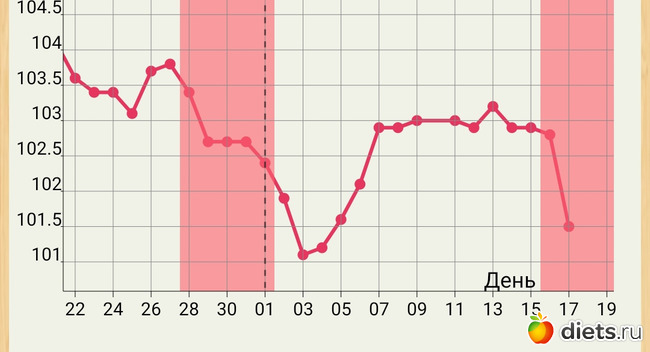 Но вот вчера вышла на работу - 23 т. шагов, плавание в бассейне и процесс снова пошёл, итог - 101,5 кг (-1300 гр от вчерашнего взвешивания).