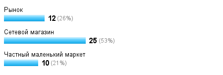 Овощи-фрукты и молочку покупаем в основном в гипермаркетах: "Глобус", "Ашан", на крайний случай "Карусель" и "Пятерочка". Кстати, если поехать в гипермаркет пораньше (мы в круглосуточных закупаемся, часов в так 7-8 утра), то овощи-фрукты только выкладывают и можно выбрать вполне хорошего качества, да и народу очень мало - можно спокойно все выбрать, этикетки почитать