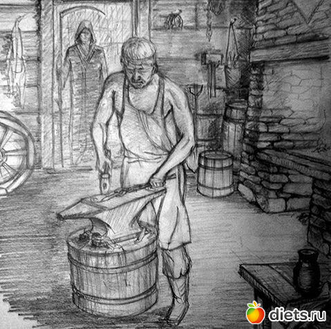 Переступая ватными ногами, кузнец подошел к наковальне и взял в руки молоток.