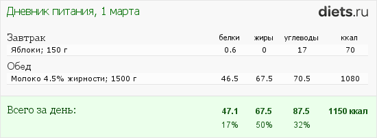 Диетой не предусмотрены разгрузочные дни, но я чуток форсирую и сегодня к меня разгруз на Молокочае.