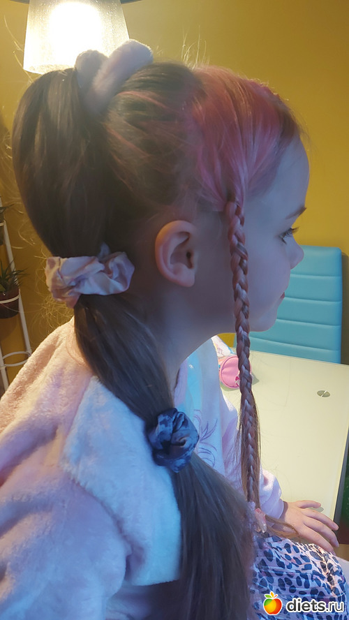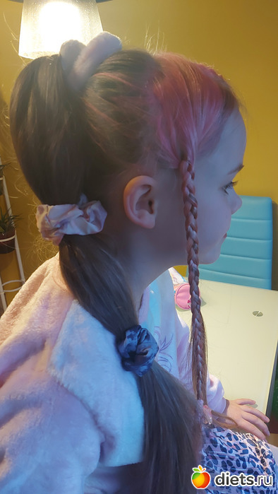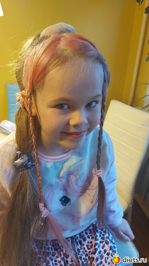 Покрасила девуле несколько прядей в розовый цвет. Краски в упаковке оказалось свосем капля