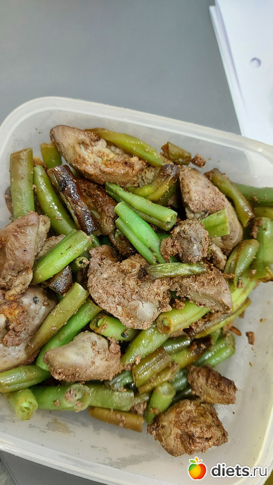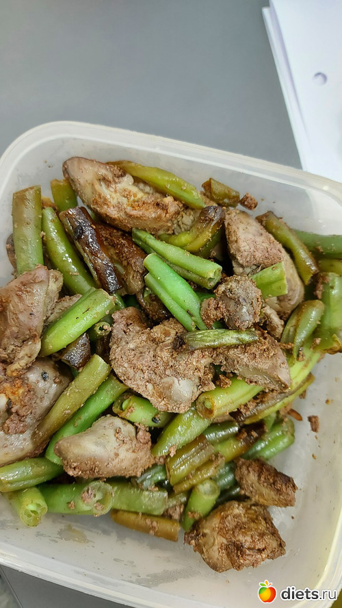 куриная печень, потушеная со стручковой фасолью