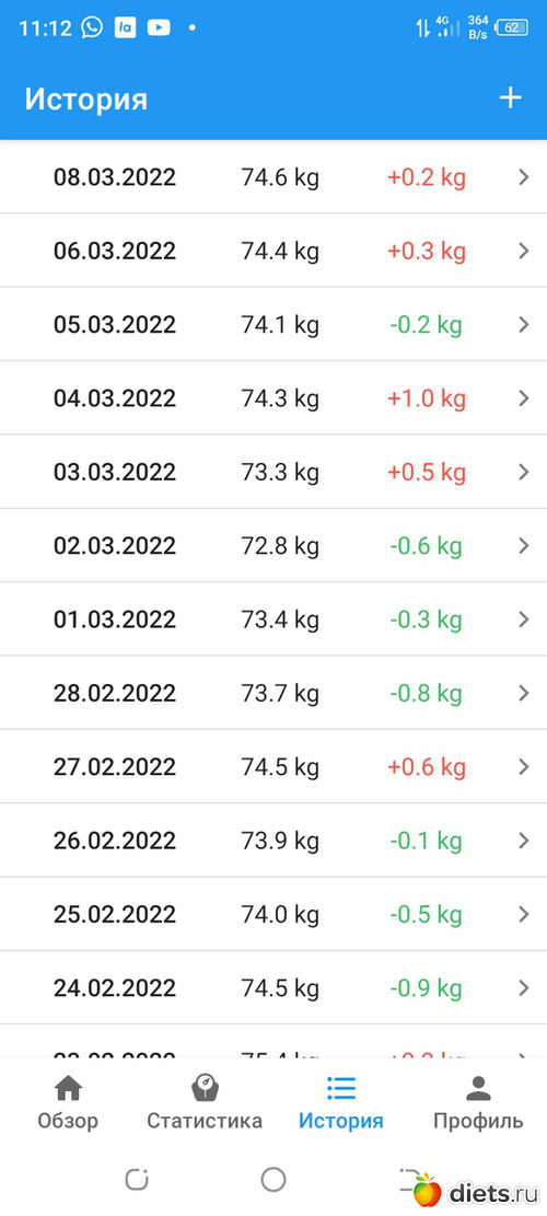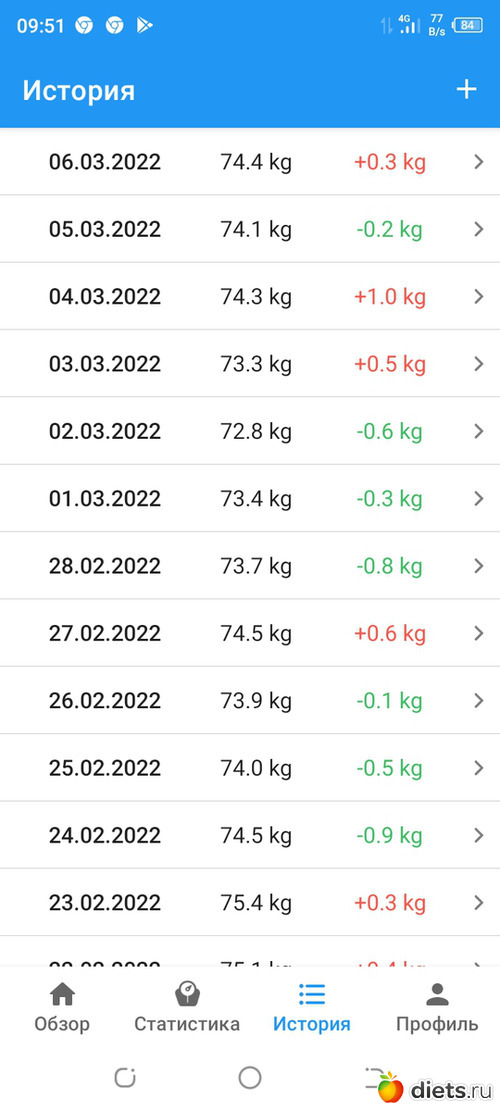 . Было 73.3. Так что водичка задержалась и я в плюсе(((