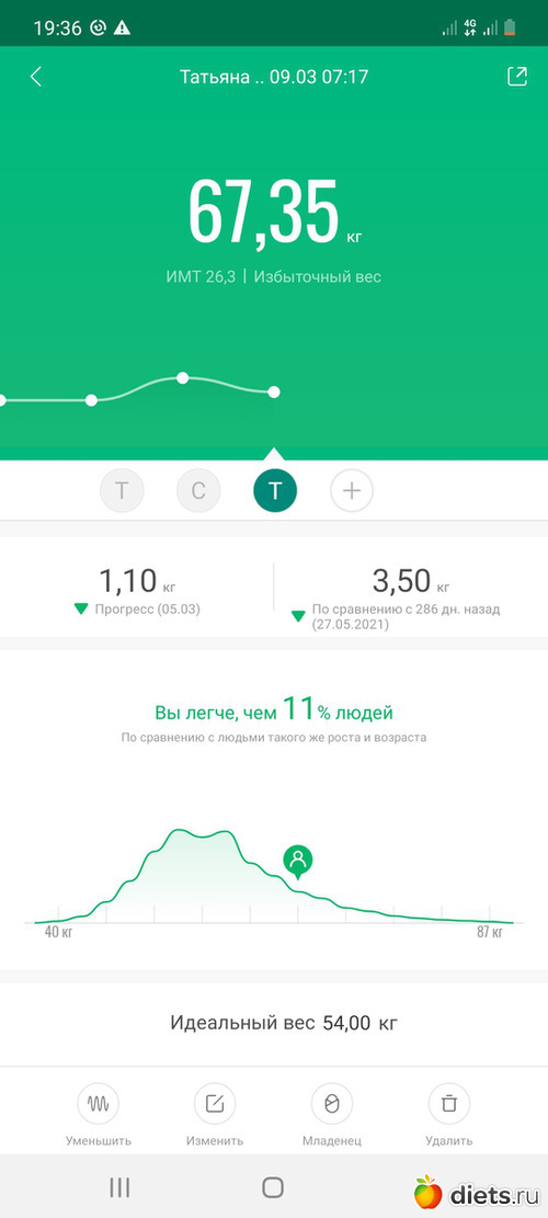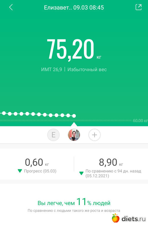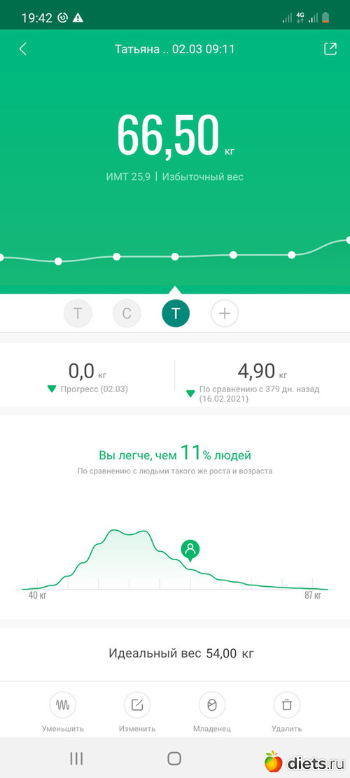 Вес на 08/03 83,9 , вес на 01/03 57,3