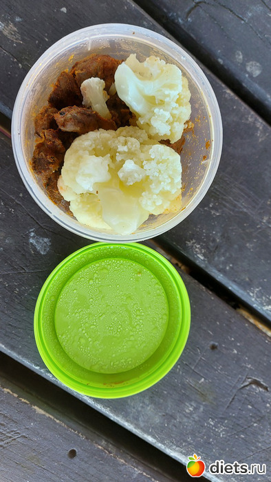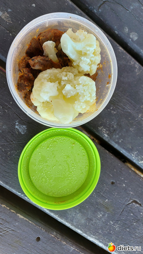 Мой обед - тушеные куриные желудки и цв капуста на пару. Все мы ели разное: сын - индейку, доча - свинину, муж - яйца...