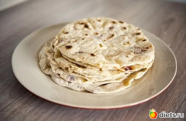 Замесить тесто, оно получается мягкое, приятное и эластичное. Разделить на 20-16 шариков, всё зависит от диаметра сковороды. Накрыть клеёнкой и дать отдохнуть тесту 20 минут. Раскатать тонкую лепешку и потом ещё растянуть в руках как можно тоньше, у меня они прозрачные почти. Обжарить на хорошо разогретой сковородке без жира по несколько секунд с каждой стороны. Снять на заранее приготовленную поверхность и хорошо побрызгать ещё горячее изделие водой, накрыть клеёнкой, и так поступать с каждой лепёшечкой. (водой брызгать обязательно так как они будут сухие и не эластичные).