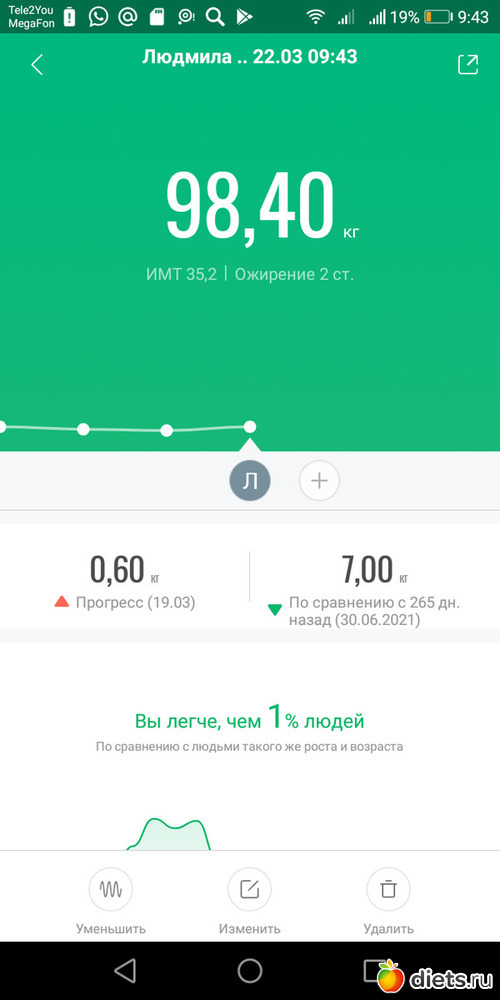 Вот блин нет бы было еще -400 грамм и были б уже цифры поприятнее))))