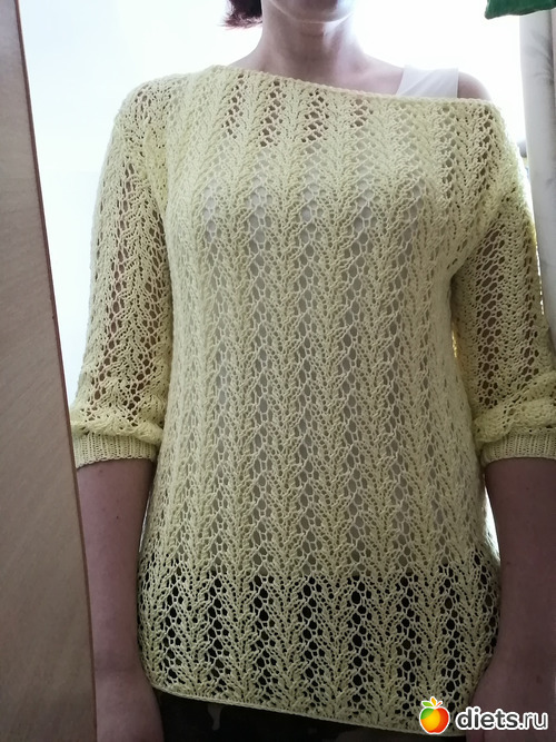 А свитерочек, который хотела связать недели 1,5 назад, я связала. Но накосячила с рукавом, пришила его наизнанку