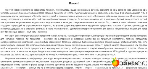 — Вот жеж сволочи!!! Хозяйка сейчас звонит, говорит: продавай покрывала по 22 тысячи! А они 15 стоят! А ведь это неправильно. Покупала же она их по старой цене. Сказала: " поднимай цену на всё!"