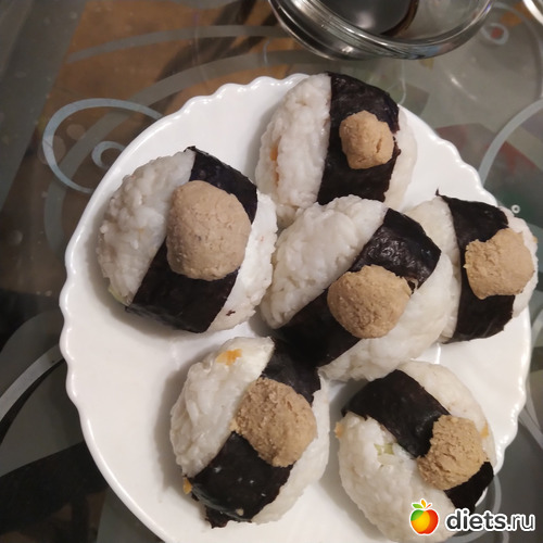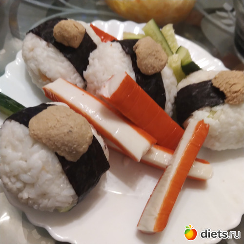 Онигири. Сегодня такие вот. Внутри форель солёная и копченая, крабовые палочки, сливочный сыр, огурец и нори конечно, которые опоясали вот рис. Мы очень любим и суши, и роллы, сашими редко делаю, как-то совсем сырая рыба - это, на мой взгляд, непросто. Совсем прям редко хе делаю, но чаще просто роллы. Вот такое делала впервые, разве что очень давно лепила их... Читать полностью