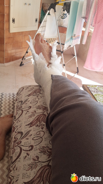 Нога похожа на змею, меняющую шкуру. Змею, похожую на сардельку. Сустав не гнется почти. По идее, чтобы его разрабатывать, надо сначала разогреть массажем (я так делала с коленом). Но гипс мешает массаж, а ещё кожа, которая шелушится. В четверг на следующей неделе будет 44 дня с момента операции, врач принимает в поликлинике только по четвергам. Мне было сказано, что на 45 день можно приехать на контроль и, скорее всего, снять уже гипс. Думаю, что не стоит ждать ещё неделю, попробую уговорить отвезти меня в следующий четверг..
