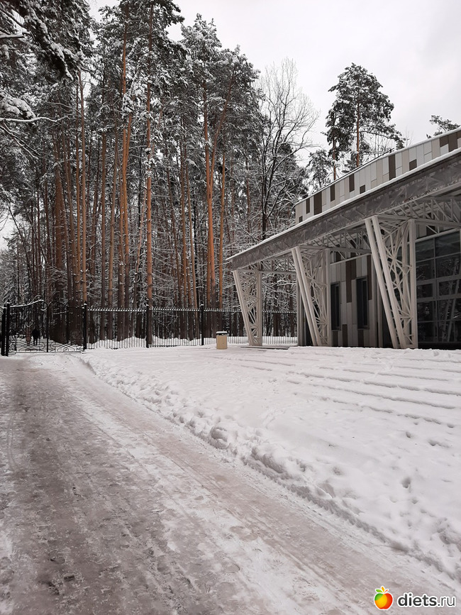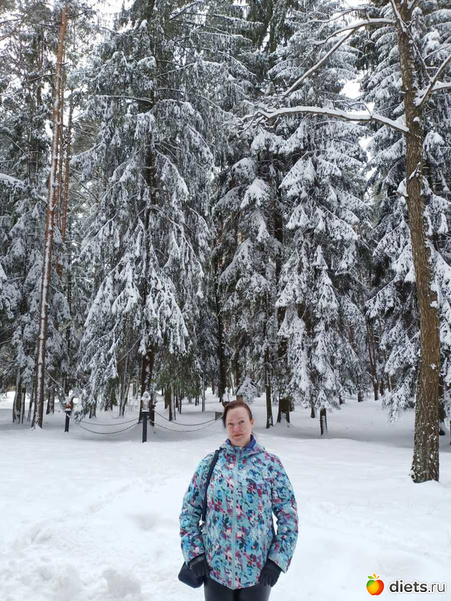 На дорогах слякоть, а в парке снежные сугробы, под ногами - утоптанный снег, не сыро, ветра нет, ёлки такие массивные стоят...