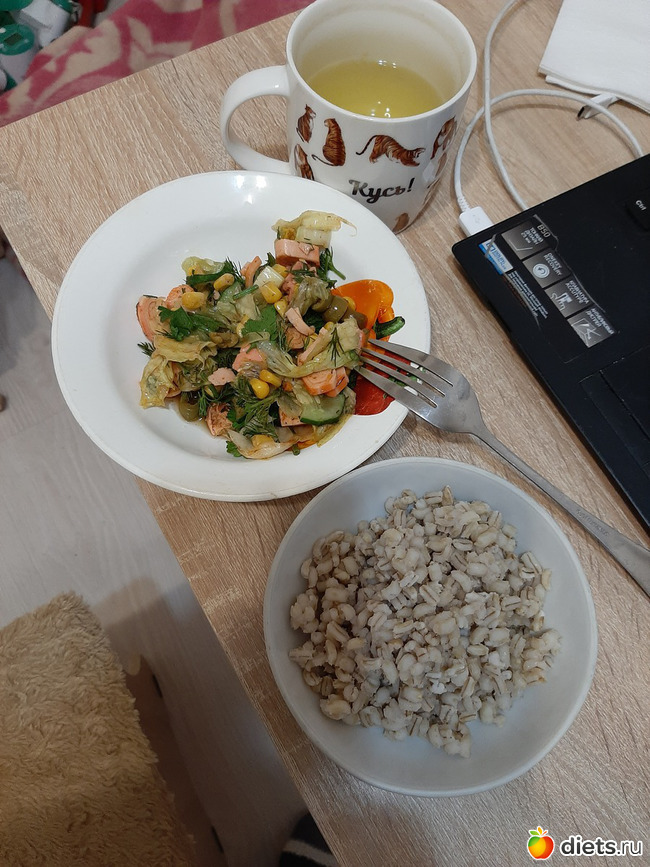 Хотела завтра разгрузочный день сделать, но нужно доедать холодильник, там и суп с мясом гречневый, и салат с морепродуктами - оставлять уже никак...