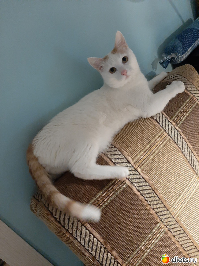 Под праздники услышала писк, подняла на ноги слесаря, открыли подвал. Мама кошка и 2 котёнка погибли, Филька остался, но умирал. Она его выходила и искала, куда пристроить, а мы как раз котика искали. Главбух ей сказала, она фотку мне выслала белобрысого, муж глянул и сказал- берём. Даже не знали, хозяйка квартиры будет против или нет. Но взяли. И вот с нами теперь, любимка наш