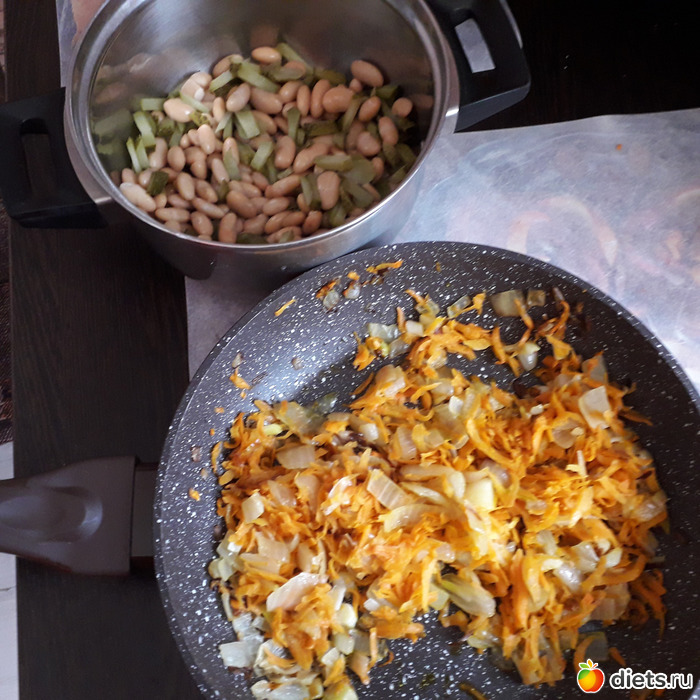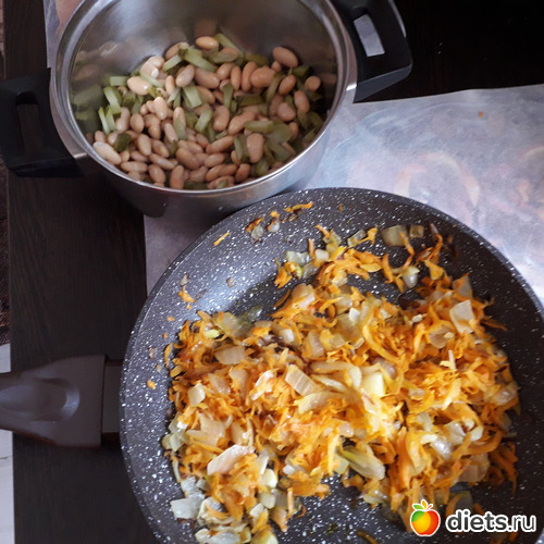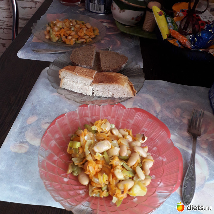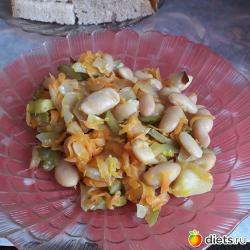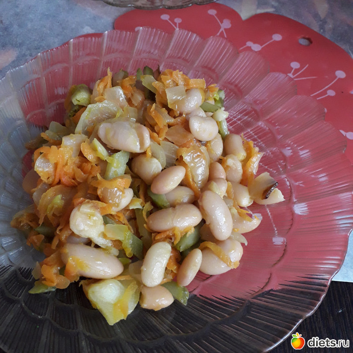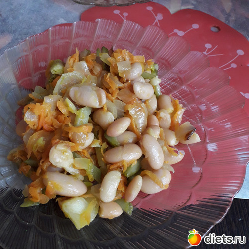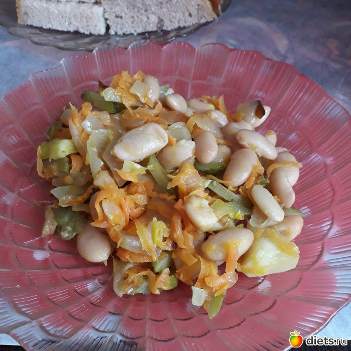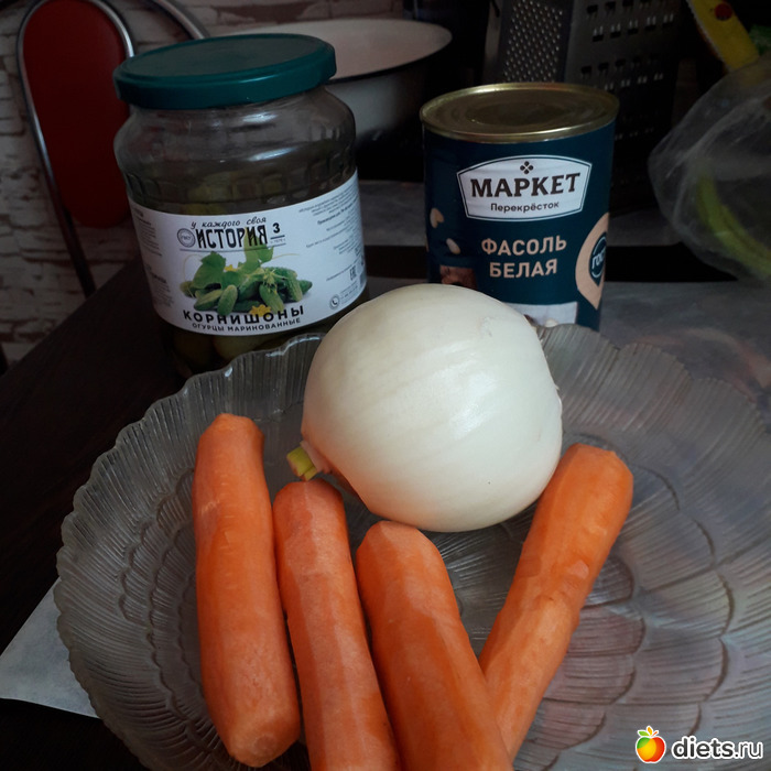-Сделала салат с фасолью, луком, морковью и маринованными огурцами