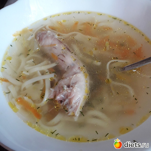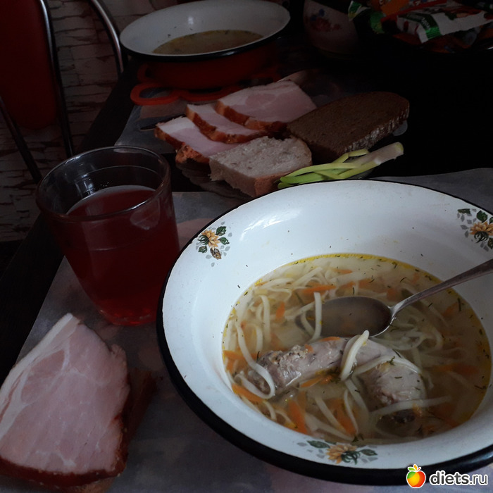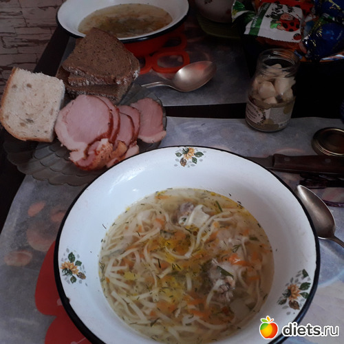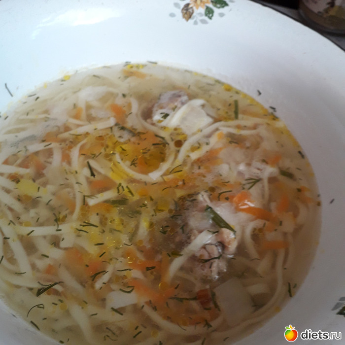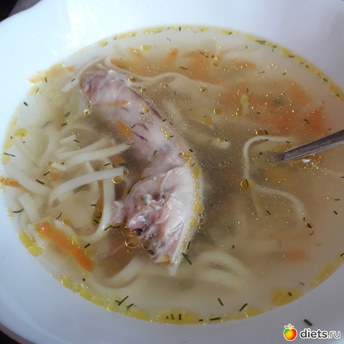 -Разохотили куриными шеями. Купили, сварила с ними-суп-лапшу