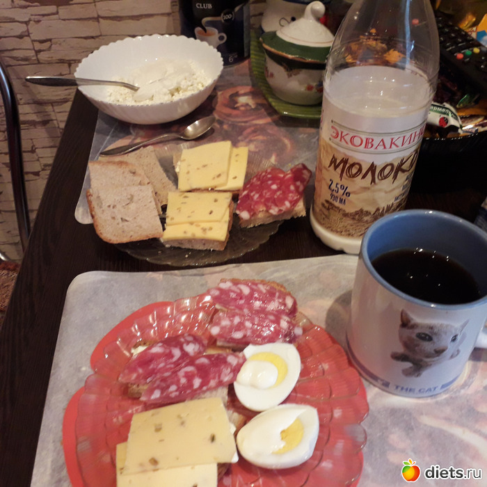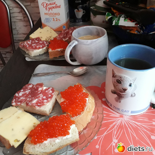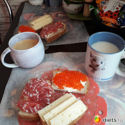 Бутерброды, кофе-у мужа, у меня -чай с молоком