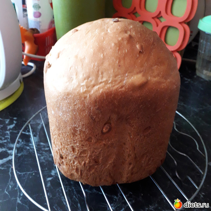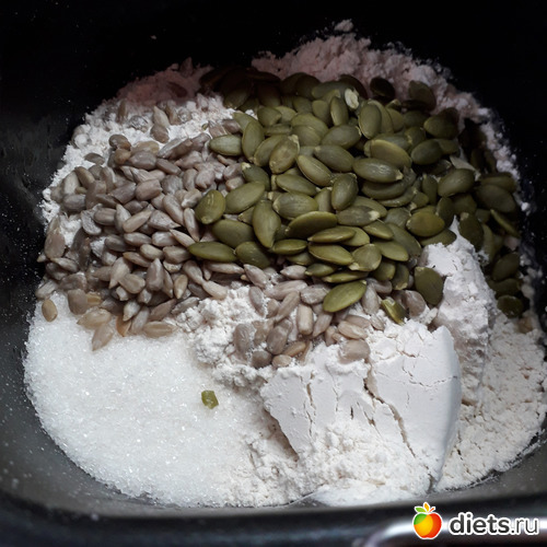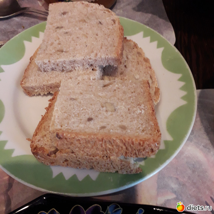 -Испекла хлеб с 3-мя видами муки-пшеничной 1 с.+ржаная+пшеничная ц/зерновая с 2-мя видами семечек, на сыворотке